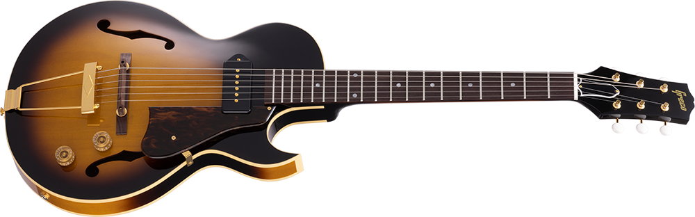 GES-ATは、ミッド・センチュリーのアメリカン・ギターをイメージした13.25インチ(336.55mm)幅の小型なシングル・カッタウェイ・アーチトップ・ホロー・ボディー・エレクトリック・ギターです。
